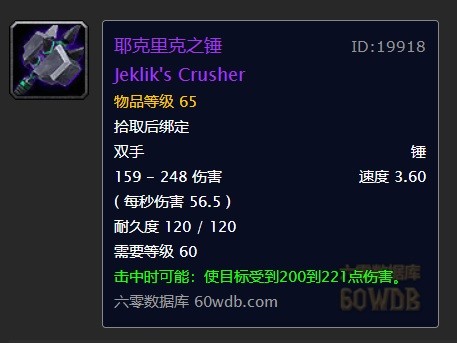1号BOSS高阶祭司耶克里克(蝙蝠),直接掉落的史诗装备为2个戒指和一把双手锤:
