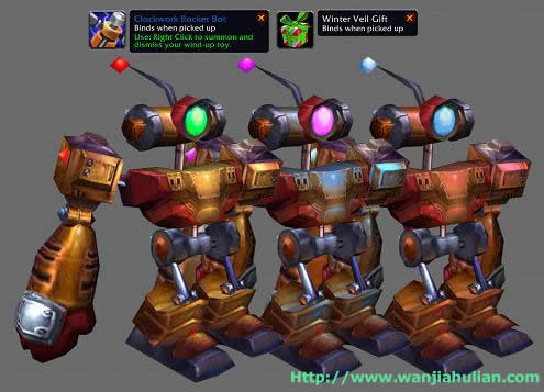 在铁炉堡和奥格瑞玛的圣诞树下你可以开出这个小礼物!它让你可以召唤一只非战斗宠物,伴随你左右。