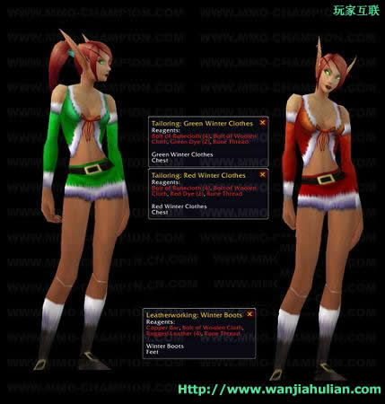 你完成了去年的冬幕节任务吗?如果是的话,你有裁缝/皮匠/烹饪这些技能的,都会得到冬爷爷邮寄给你的新配方,包括2个“ 比坚尼” 喷鼻血套装, 1个皮鞋, 1个火辣苹果酒饮品 (回蓝的饮品,有BUFF作用) 的配方。