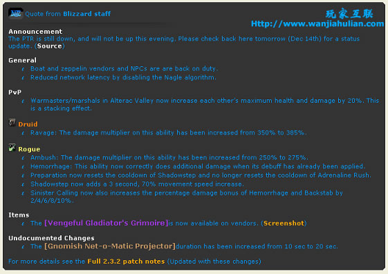 ——整个敏锐天赋树进一步增强!暗影步的加速,邪恶召唤的大规模buff,以及“预备”不能冷却“冲动”,这些“出血”之后天赋的整体加强,标志着BLZ消灭ming的“31/30”功利天赋搭配的决心,以及对深敏锐盗贼的期待。