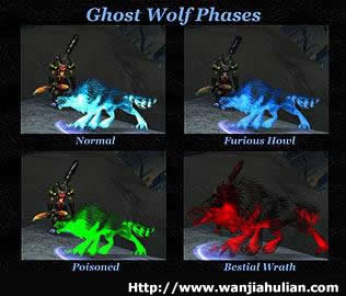 幽灵狼在正常、狂怒之嚎、中毒和狂野怒火状态下的外观