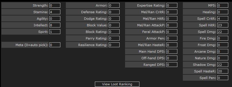 如果说上次推荐的MAXDPS是根据几个典型天赋所给出的装备评分,那么这次的Lootrank就是总体的意见.这两个网站各有所长,也各有所短.MAXDPS只有这么几个可选,而且某些职业根本没有;Lootrank虽然有全职业,但是天赋技能不够明细.两个一起使用或许会更好一些.