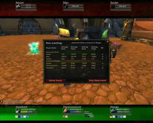 值得注意的是,这些录像使用到了观众模式。观众模式界面下可以直观的看到竞赛双方的生命、法力、增益、减益、目标以及宠物等信息,还可以自由选择视角,包括跟踪指定角色、自由视角、广角等。各位可以先看看下面的截图。