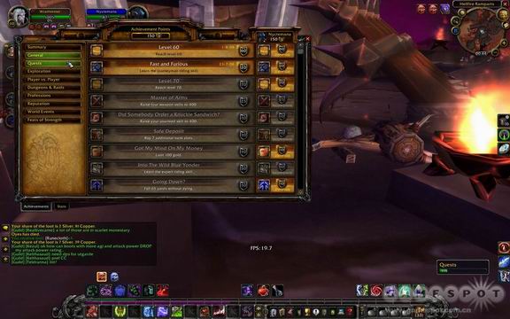 - 你的附近或者公会内有人完成新的成就后,会有明显的提示——目前来说,这就是刷屏,想想看25人副本的时候你们杀死了某个boss完成成就后的壮观景象
