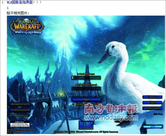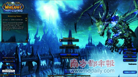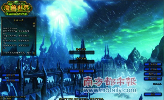 今天,世界上最有影响的网络游戏《魔兽世界》在中国更新版本《末日的回响》。部分心急的玩家提前下载了补丁文件,看到了新的登陆界面,该界面与其他国家和地区有所不同———少了一条在屏幕上飞舞的冰龙。