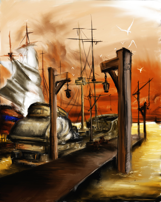 画了与平安夜无关的暴风港口,并且没有细画,算是涂的。现在总是静不下心来,要是再画上张那样的云彩真的会骂娘。还是喜欢简单的草图+水彩上色.