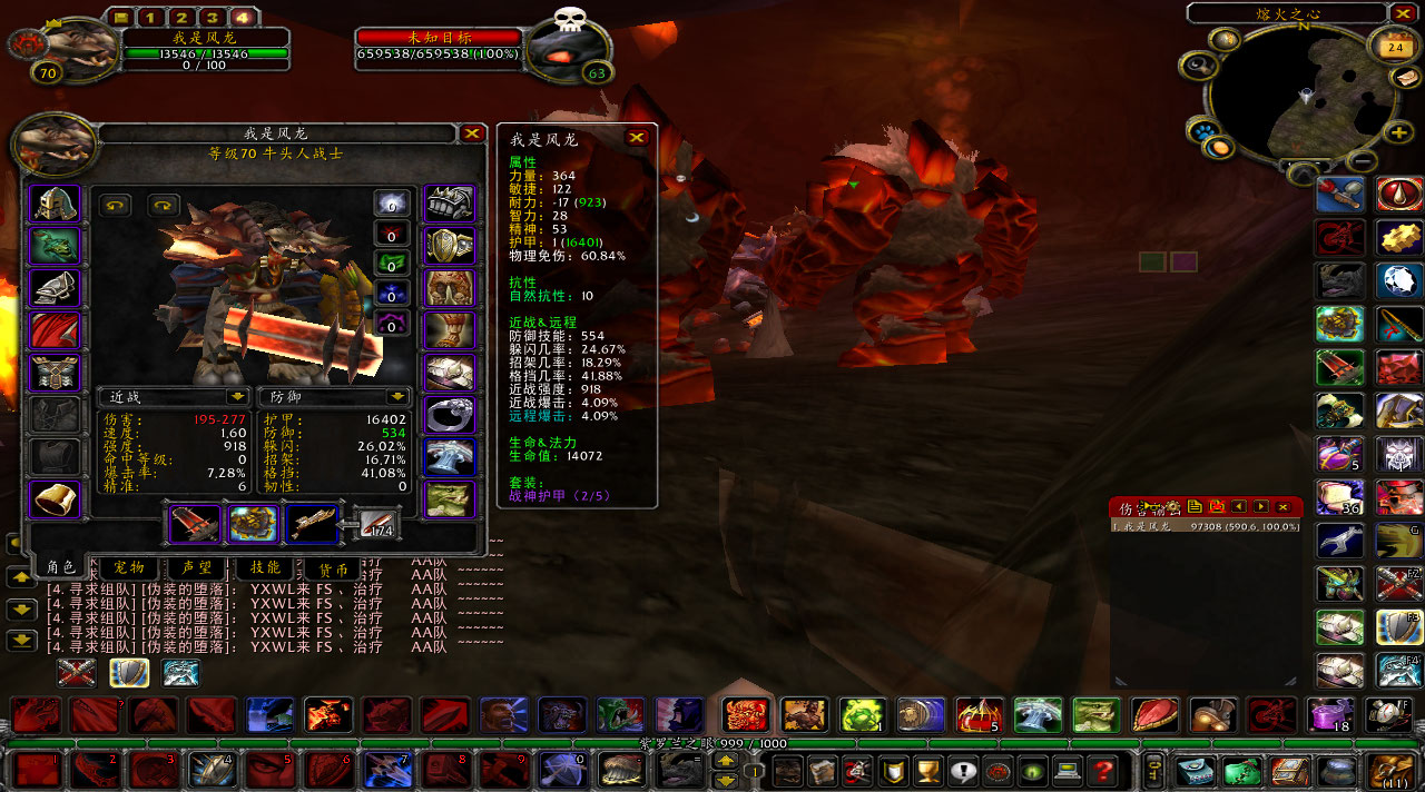 加尔命中战士的攻击是600多,只要我们把格挡值提升到700,那么格挡也就和招架、躲闪、未击中一样的免伤技能。将这四围提升是足够高,理论是到104%的时候,加尔就打不到你了,格挡相对其他3围比较好堆,不过我的四围才94%一样行,准备好红和糖应急就可以了。
