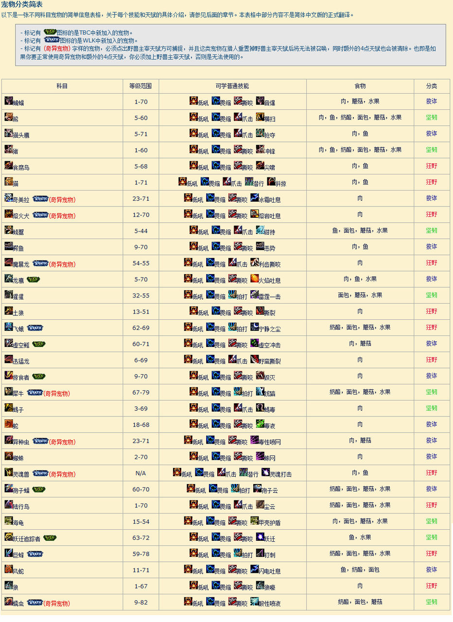 刚开了3.0末日回响,作为一个LR有着翻天覆地的变化,首先就是陪伴我们成长的宝宝们,为此我寻找多方资料,想了解宝宝的技能属性,可惜都不够详细,于是我跑遍世界,抓遍一切宝宝,只有三个没抓,两个是巫妖王新地图上的,蠕虫我以为冬瘟的能抓,可惜是不能驯服~~以下便是其他29个宝宝的新技能,附带一张全宝宝的全家福,我点了天赋~~资历~~所以宝宝技能时间缩短30%~~请大家酌情分析