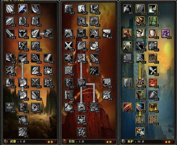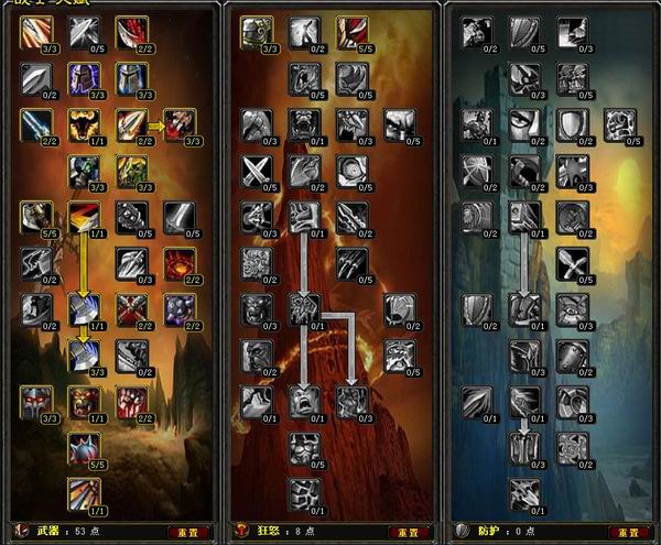 普通的PVP天赋。假设使用武器为斧头。舍弃了对网络和个人操作有一定要求的强化猛击。天赋点投到最大化攻击力的天赋上。剑刃风暴是这个时期战士PVP唯一的杀手锏,用的时机好不好一看便知。第三层的愤怒掌控、第六层的创伤点不点因人而异。 | | |