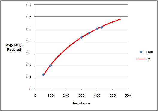 3. 在一个给定的抗性下,长时间的平均伤害抵抗似乎遵循下面这个公式