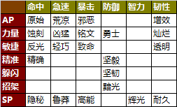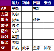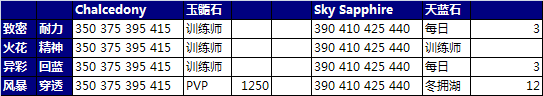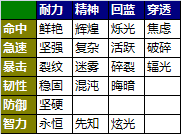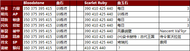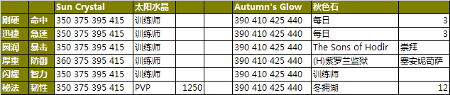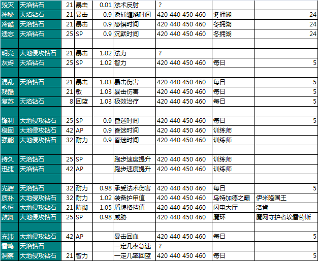 只列出了宝石的属性方向,具体的点数都是固定的,也不列出了。