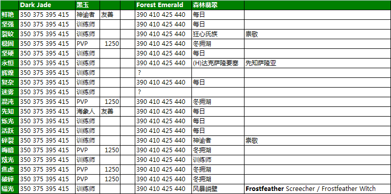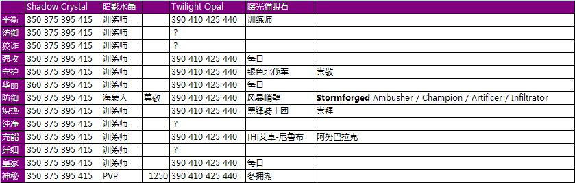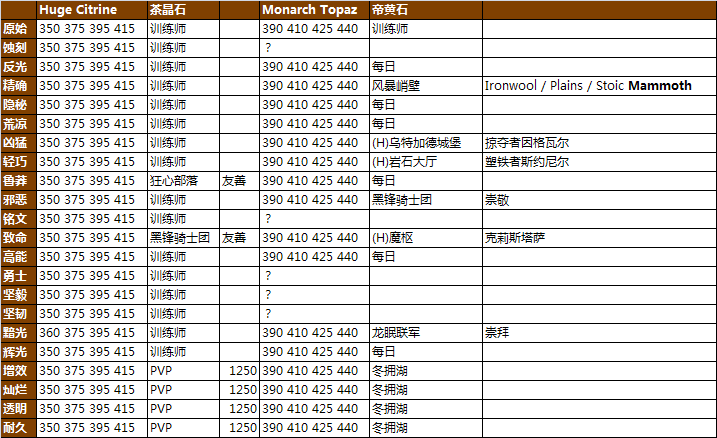 宝石的中文名称来源于AckisRecipeList插件,其他的资料来源于wowhead。