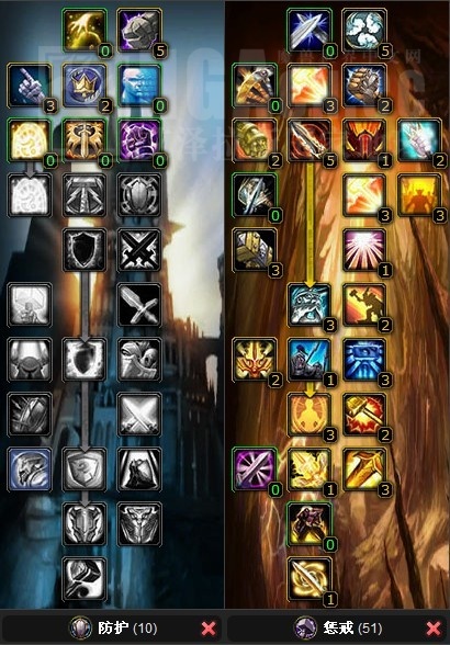 防护系的天赋选择,以提高三围血量护甲以及仇恨输出为主。不论何种加法,大体方向是不会变的。因为圣骑的混合职业特性,如果作为坦克,先天方面是有劣势的。所以生存和仇恨问题是天赋需要考虑的。基本按照笔者的加点是没有太大问题的。