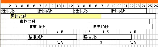8秒瞄准VS10秒瞄准,从上图,可以看出,8秒瞄准和10秒瞄准的区别≈0,24秒内,同样数目的各式技能,这个也解释了为啥上面推荐 爆炸 毒蛇 杀戮,其实,杀戮改成稳固也未尝不可