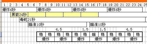 2)点了荷枪实弹后,由于涉及到了爆炸的连发,这样单纯的序列宏肯定是不行了,触发荷枪实弹后,较为理想的方法是一直爆炸,(之前应该是B牛有类似的分析,请自行搜索)那么,这里就可以变通一下,我的解决方案就是 把 爆炸 剥离出来,其他技能形成 reset>6 的序列宏。
