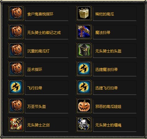 <TABLE border=1 cellSpacing=0 borderColor=#ffffff cellPadding=4 width=90% bgColor=#eae1ba align=center><TBODY><TR><TD width="50%"><a href="http://wow.17173.com/content/2010-10-16/20101016130702817,1.shtml" target="_blank">万圣节简介及背景</a></TD><TD width="50%">