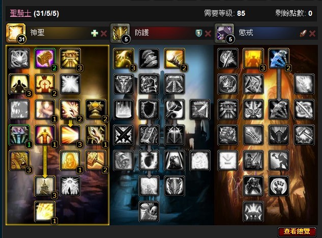 PvE神圣[31/05/05]CTM神圣骑士天赋配点说明及操作方法防护[00/31/10]CTM防护骑士天赋配点说明及操作方法惩戒[07/02/32]CTM惩戒骑士PvE天赋专业推荐及操作手法PvP
