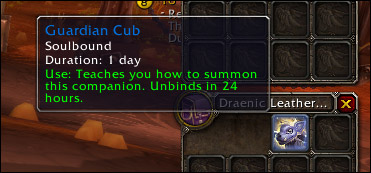 北京时间11月2日凌晨,暴雪商城正式发售超萌新宠物小翼狮守护者,而小翼狮守护者是暴雪商城首个在一天之后可以自动变化为装备绑定物品的小宠物——在玩家到手24小时之前为拾取绑定,到手超过24小时以后将变为装备绑定。