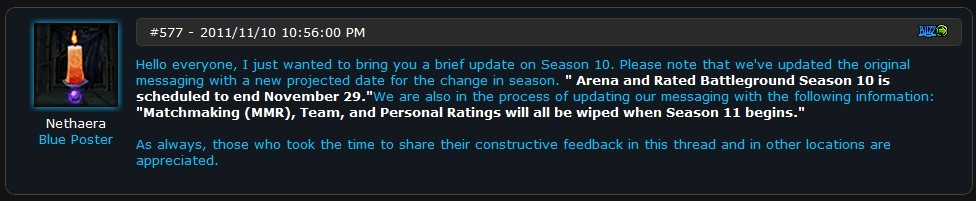 据最新的暴雪蓝贴消息,原本定于11月15日结束的S10改成了12月6日上线,尽管暴雪没有公布过4.3的准确上线时间,不过经验证明一定是赛季交替的同时进行,所以这个举动也可以看成4.3上线的日期将做拖延。