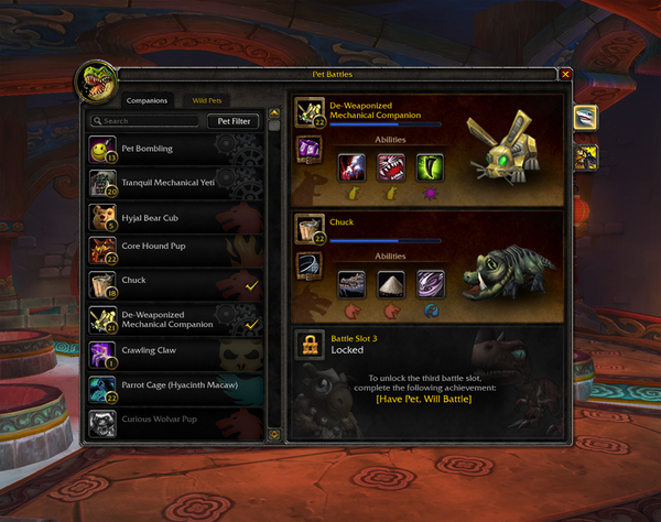 至於J.Allen被问道熊猫人的灵感是来自於亚洲文化,他也不否认,并直截了当的说:「我们真的对魔兽故事既有的内容感到很腻。」另外针对宠物对战系统的问世,他也进一步说明那是魔兽开发团队的目标之一,设计师们在开会时讨论到这些非战斗小宠物若能彼此对战,一定会相当有趣,因为许多玩家早就拥有一堆小宠物了,下一个资料片牠们就有「用武之地」了。