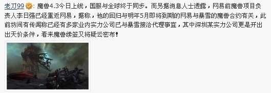 今天老刀舅舅的一篇博文,其中暗示腾讯可能参与明年网易魔兽代理权到期之后的代理争夺。