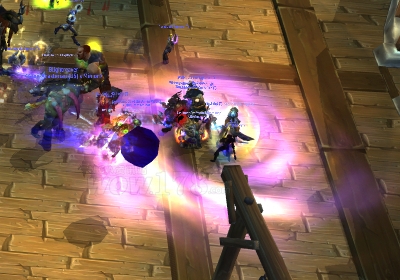 第一阶段,远程DPS优先击杀飞龙,近战DPS全力抽近战怪。当甲板上出现大漩涡后,立刻站进去分摊伤害;出现小漩涡后,可以选择躲开,如果远程较多,可以将远程和治疗分为2-3人的几个小组,适当的去分摊离自己较近的暮光弹幕的伤害,以减轻船体受到的压力,不过绝对不要一个人去吃,否则会被秒。