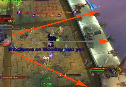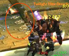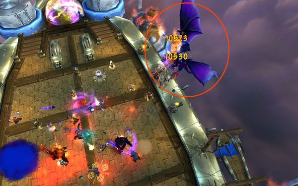 开场后会飞来第一波两只飞龙,以后每分钟分来两只,一共三波。这些飞龙飞来后,先是扔下两个小怪(一个暮光杀戮者,一个暮光恐惧之刃),然后就开始对甲板扔暮光弹幕。