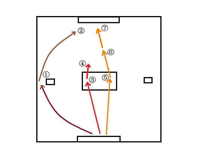 这个组合对三板来说应该是比较头疼的了,其实不然,打的好的三板并不怕贼法牧,此外手绘了一张跑位图,见笑。
