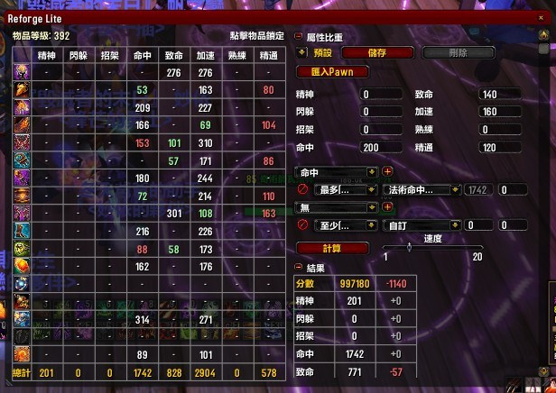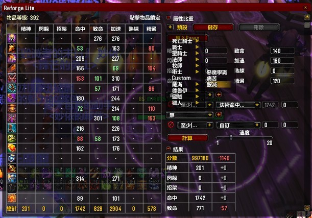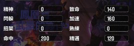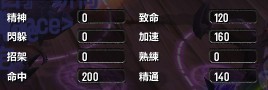 比如我选择的是毁灭术士,目前阶段我选择精通比暴击好,那么我把致命改成120,精通改成140