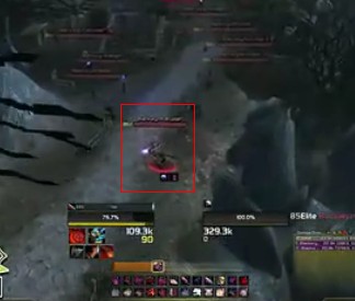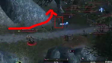 到达树后之后面对我们的是4个小怪和酒窖入口前的1只龙人(红框),在酒窖入口的右侧有2只小怪,后面有3只小怪,其中一只会在酒窖的楼梯之间巡逻。