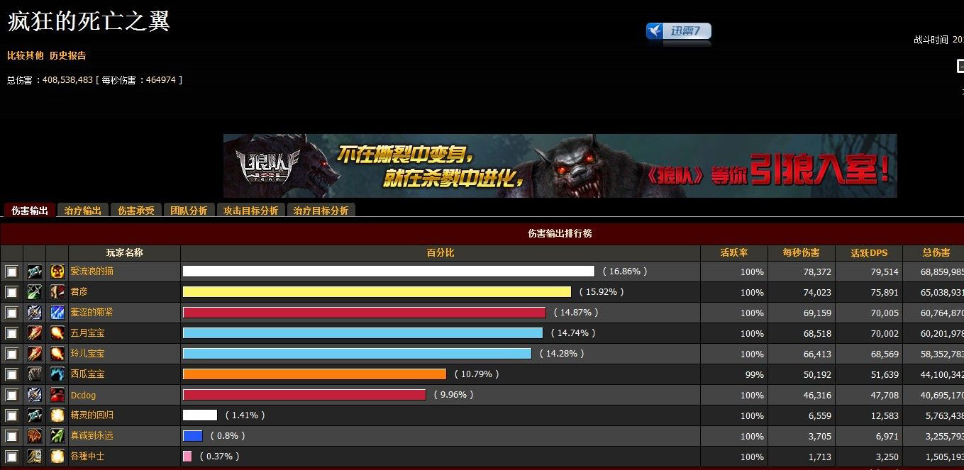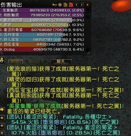 今天下午国服公会《英星集团》成功推到10人英雄死亡之翼,赢得首杀成绩,在此祝贺他们。下面为此次首杀的截图与相关的战斗数据。