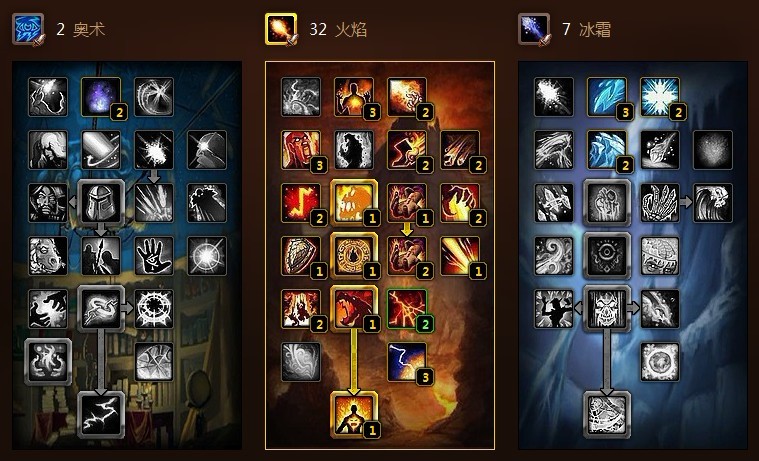 本人天赋及详细雕文 参考英雄榜链接:[ 传送门 ]。兼顾评级、竞技场、单P的多用途火法天赋(没有最主流的天赋,只有最适合自己的天赋,仅供参考)。