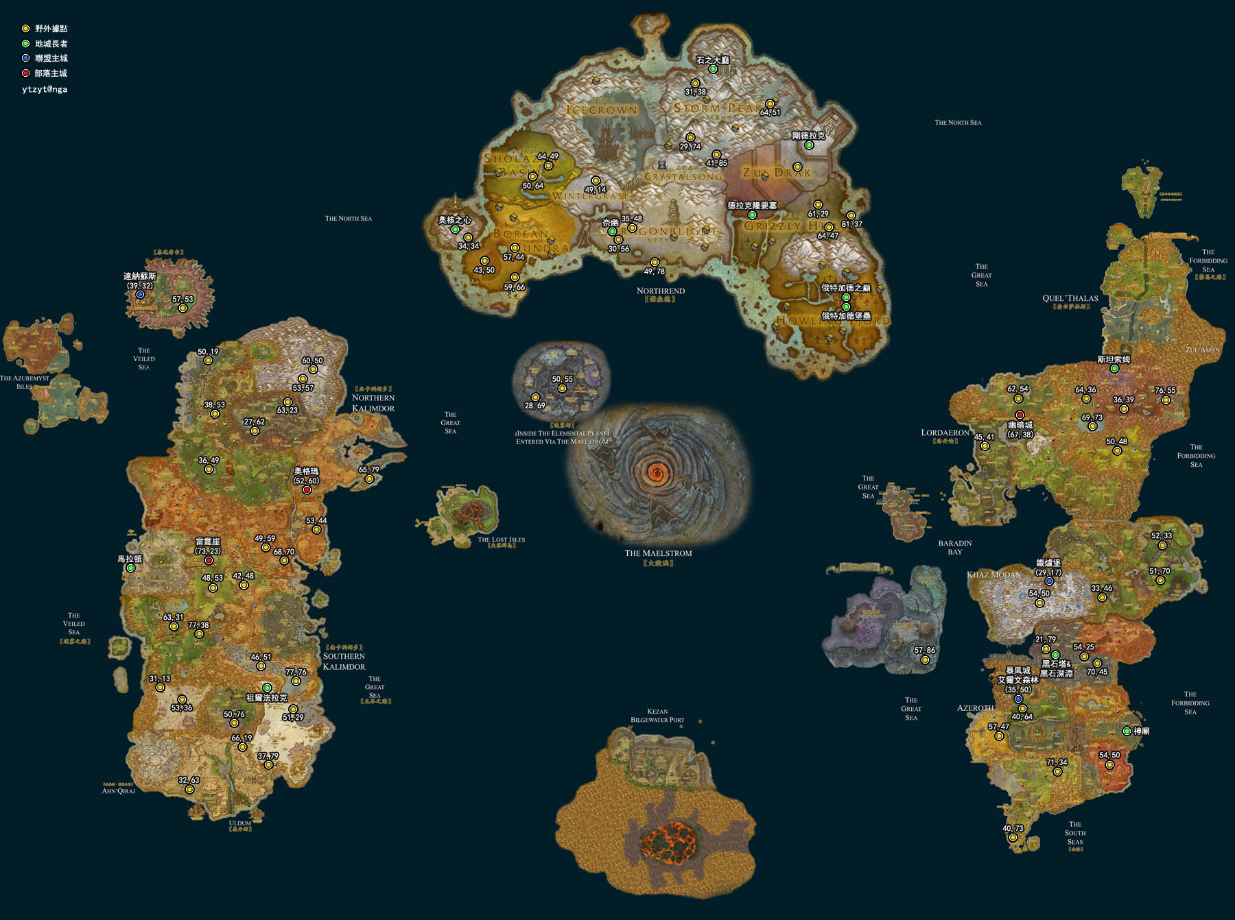 由于大灾变不少地图重新制作长老的位置和老帖里的略有偏差。