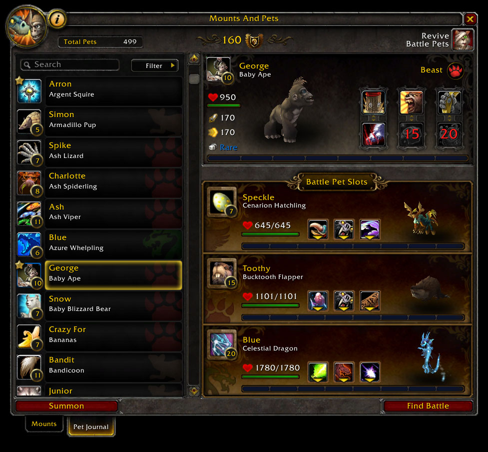 它们曾经伴你身侧,弱不经风。现在,你需要以全新的眼光来重新认识这些忠实的小伙伴,并激发出它们全部的潜力。集结你的宠物,好好训练它们,迟早有一天,你会成为艾泽拉斯最负盛名的小*****!