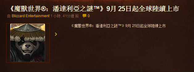相信再过两个月,美服和台服的玩家都将陆续可以玩到《魔兽世界: 熊猫人之谜》了。