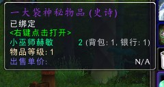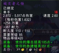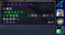 有名字可以看出这个袋子开出来的是武器装等猜测应该在420-460。比掉落的蓝装高10个装等吧,毕竟是紫色的嘛。