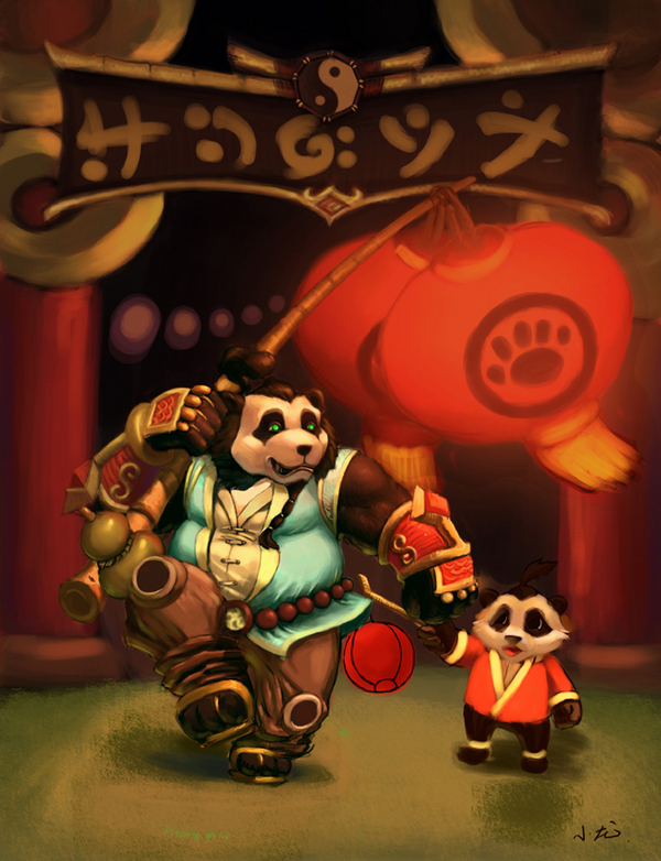 看大家都在踊跃的画熊猫人,我也借用老师的账号发下,过年时画的,本来是想参加魔兽贺卡大赛的,但是来不及了,今天终于翻出来,请大家多多指教!