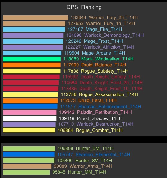 但是上次(15952补丁)的排行中,缺少了骑士和新职业武僧。这次,simulationcraft新的模拟排行出来了,所有职业都包含在内了,而且版本为5.0.4 补丁号为15961。