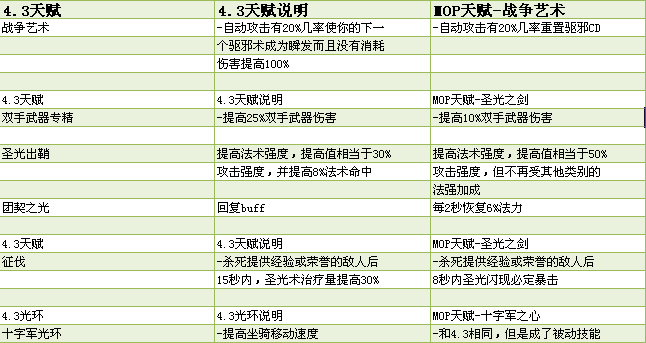 来自TGN的MOP职业入门指导,视频里详细地比较了4.3到MOP惩戒骑技能及天赋的各种变化,供各位喜爱惩戒骑天赋的玩家参考。
