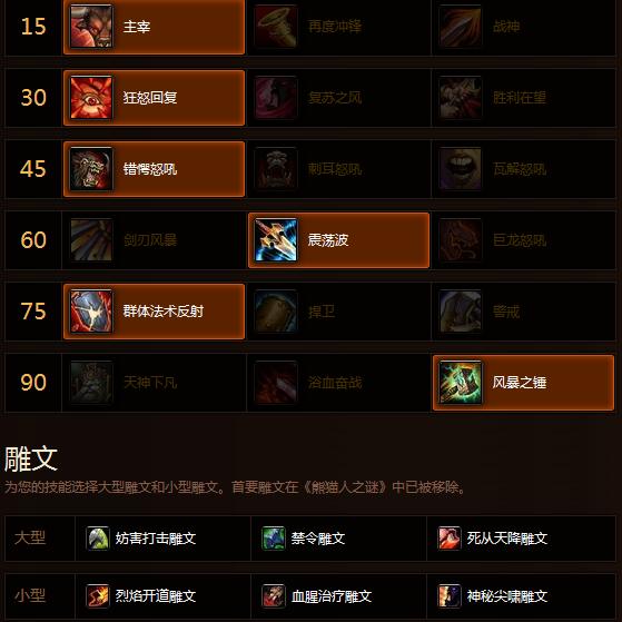 个性雕纹搭配 [ 妨碍打击] 雕纹:你的英勇打击or 顺劈斩会使目标减速50%持续8秒。