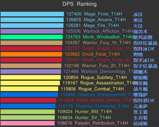 法爷..介个...您老三甲能不能让给我们个位置?武器战惨遭削弱一落千丈(相关:5.0最新DPS模拟: 狂暴战登顶 猎人仍垫底 )。射击猎、鸟德、暗牧貌似没有看到,不提了。武僧、痛苦术这次表现略有些不尽如人意,惨遭力压,希望下次可以冲击三甲。其他职业表现平平,趋于稳定状态。这次全民大提升,希望下次有更好表现(相关:08月17日改动:全职业伤害均大幅度提升 )。