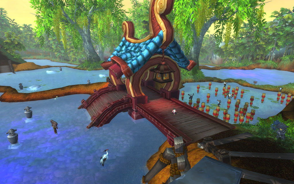 你瞧,这么多年里各种各样的动物死在了这水里,他们的灵魂与魔法池水永远地融为了一体。如果你掉了下去……嘭!接下来……你知道,你就会像只青蛙一样四处蹿跳或者像只乌龟一样在泥里爬来爬去。这儿甚至还有一个封印着臭鼬灵魂的池子。就算诅咒消失,数天内你身上的臭味都会挥之不去。我留心四处观察,看着小孩子们在熊猫人壮波的指引下从一端跳到另一端。他是个强壮且实际的家伙,多年来一直是我的导师之一。他这人心肠不错,但为人无趣仿佛久置的鱼饵,没有新鲜感。他总是:“不要那样做!”和壮波在一起……就像和我爸爸一起一样。他们都是和陈叔叔完全相反的人。