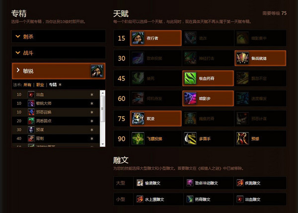 天赋:推荐天赋敏锐OR刺杀