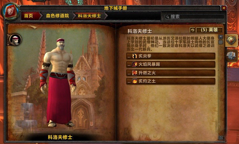 炙炎拳:科洛夫修士施展连续的火焰打击,每1秒对面前的目标造成相当于40%普通近战伤害的火焰伤害,持续6秒。