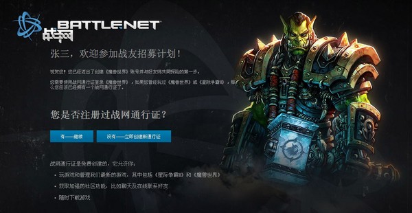 ①有——继续(在已有战网通行证下创建一个新魔兽账号)