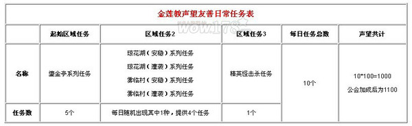 如表格所示,声望友善时,每天可以接到10个任务,共可获得1000声望。