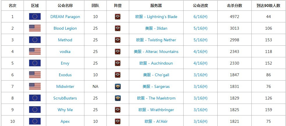 Paragon公会击杀10人H魔古山宝库各boss时间