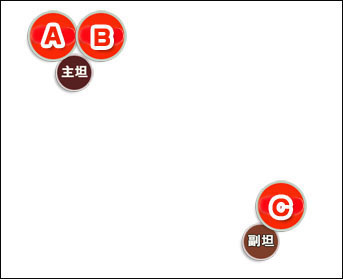 开场,主坦拉两只狮子(A和B)到房间一侧,副坦拉一只(C)到房间另一侧。注意两名坦克距离不要过远,否则在BOSS的各种场地技能的影响下容易导致该换坦的时候嘲讽不到。