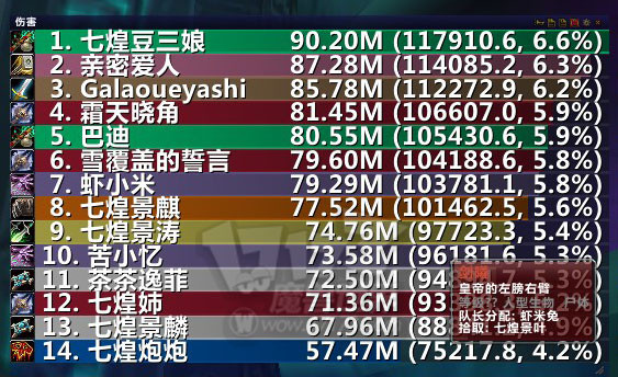 七煌公会击杀25H魔古山宝库6BOSS皇帝的意志DPS