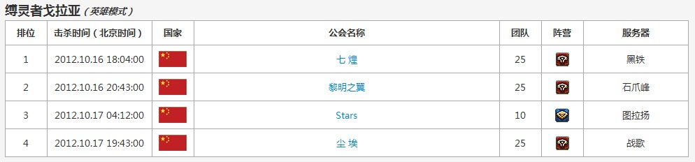 目前国服只有两个公会击杀了H模式的先王之魂。七煌仍旧处在全国领先的位置,Stars的10人团取得了全国第二的成绩,而先前表现不错的黎明之翼则卡在了这个BOSS上。